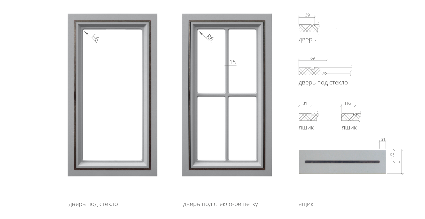 СТ (под стекло), СТР (под стекло-решетку), глухой