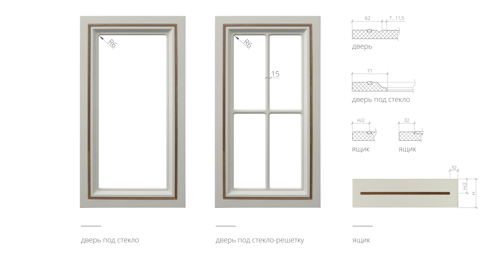 СТ (под стекло), СТР (под стекло-решетку), глухой