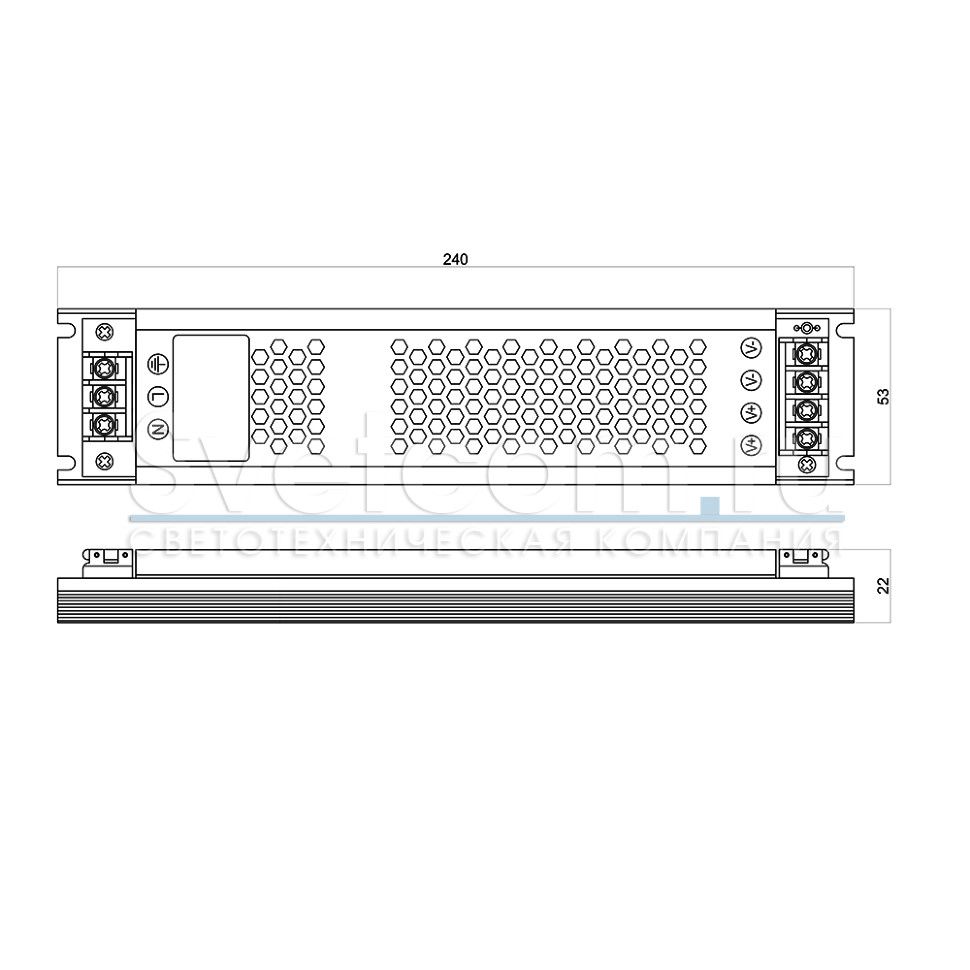 Источник питания стаб. напр. для LED, плоский, 220VAC/12VDC, max 100Вт, IP20, алюм.корп. 240х53х22мм