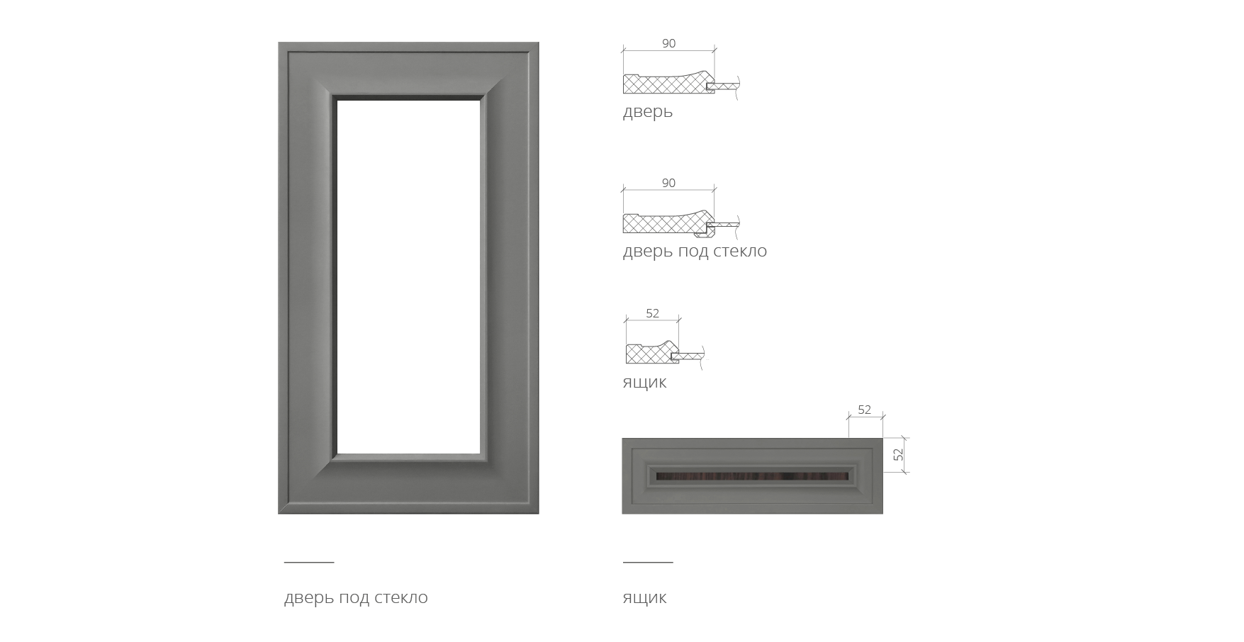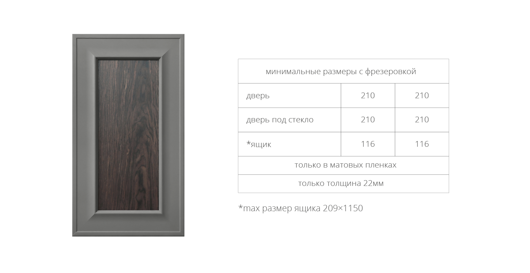 Если одна сторона фасада менее или равна 209 мм, то фасад будет изготовлен как ЯЩИК (узкая рамка)