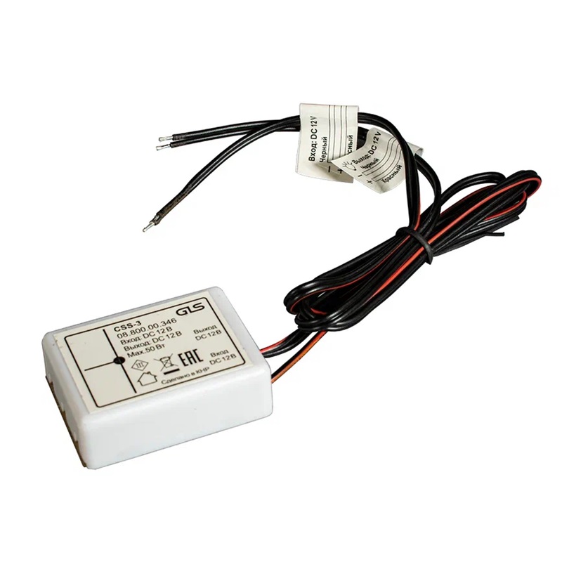 Выключатель сенсорный CSS-3 служит для включения-выключения светодиодных светильников 12 В мощностью до 50 Вт. Выключатель устанавливается на скрытую поверхность из диэлектрических материалов (ДСП, ДВП, оргстекло и т.п.), например, кухонных столешниц, декоративного/защитного фартука на кухне, стенку шкафа-купе и т.д. Место касания на видимой стороне поверхности, с обратной стороны которой установлен CSS-3, отмечается значком — стикером, обозначающим место контактной площадки сенсорного выключателя, коснувшись которой Вы сможете управлять включением / выключением света.